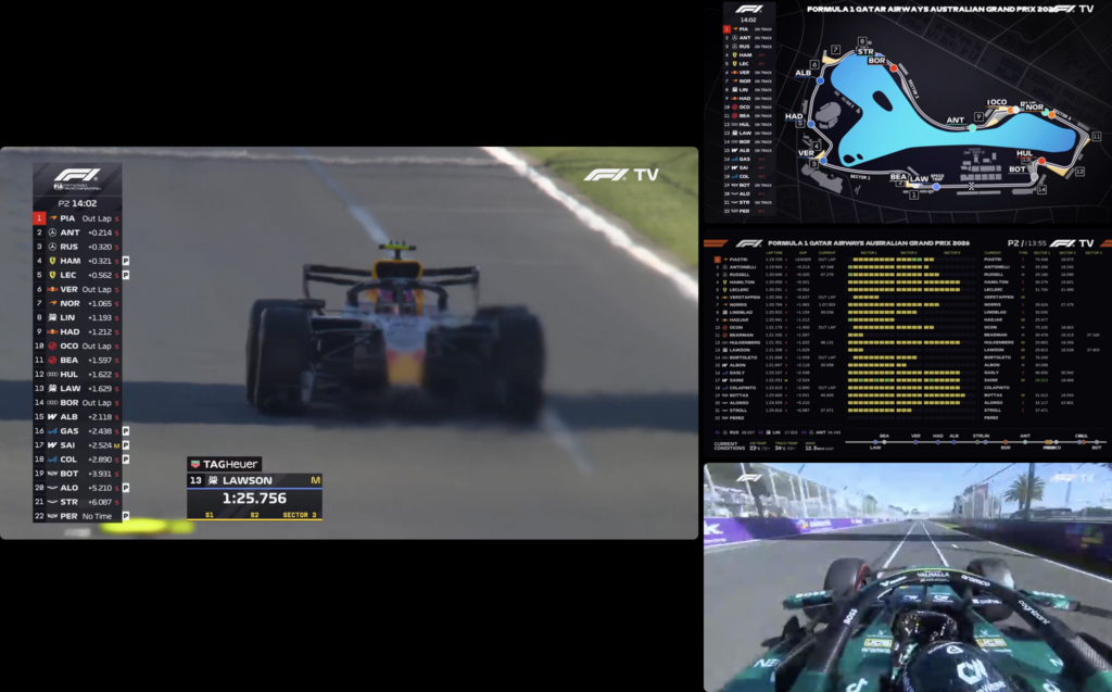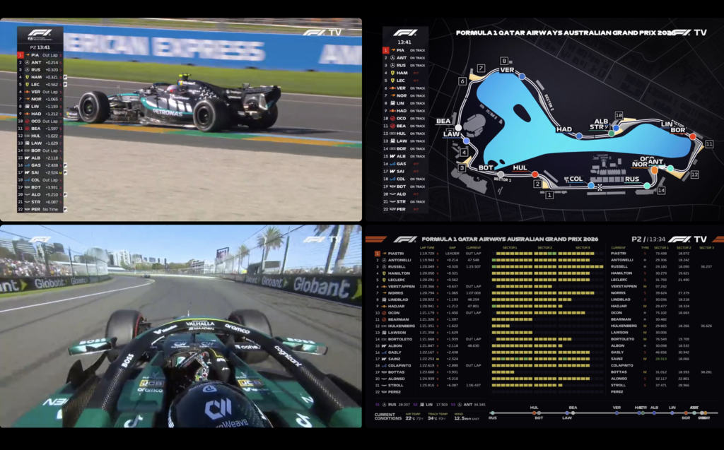 さらに、F1TV Premiumではマルチビュー(分割表示)も確認できました。