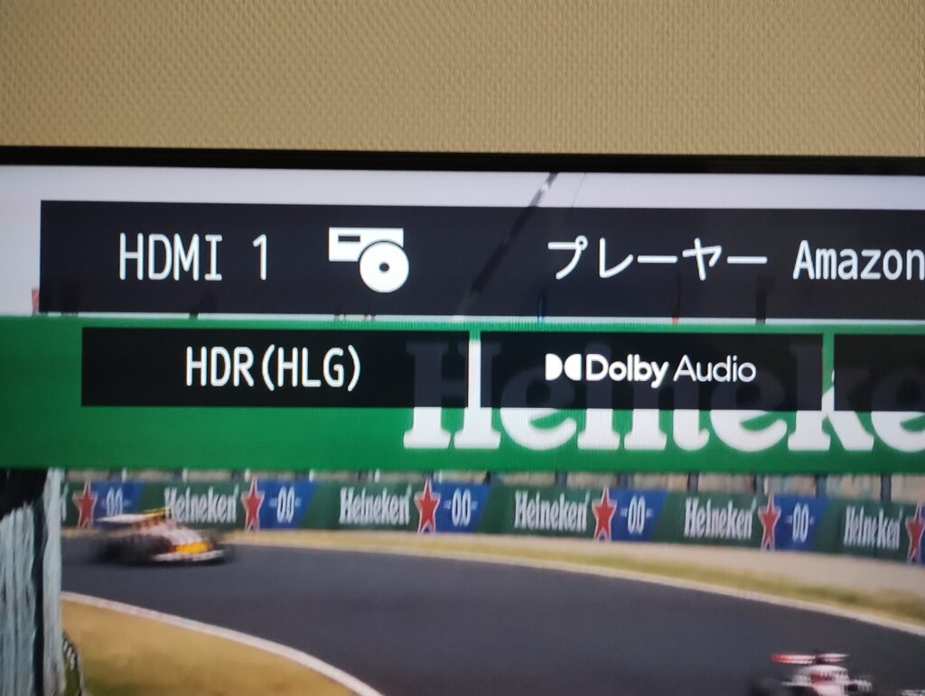 4K Maxのときと同様に、HLG表示が確認できました。 F1TVの配信フォーマットである「4K UHD HDR(HLG)」が、4K Plusでも正しく受け取られていることが分かります。